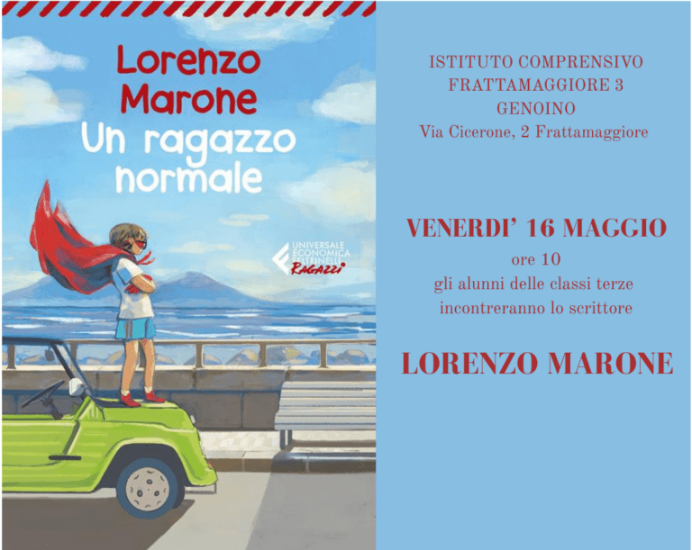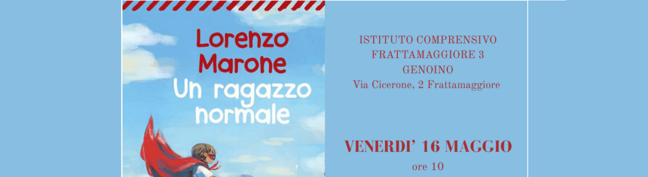Venerdì 16 maggio alle ore 10 il nostro istituto avrà il piacere di ospitare nell'Auditorium della sede centrale lo scrittore Lorenzo Marone nell'ambito del progetto "Sentieri d'inchiostro". Marone, presenterà e insieme ai ragazzi delle classi terze, commenterà passi del libro "Un ragazzo normale".