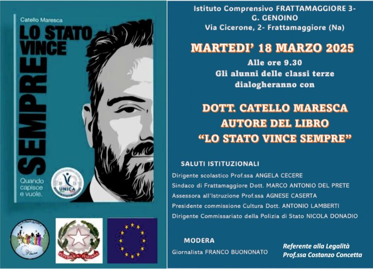 Stamattina, la nostra comunità scolastica ha avuto l' onore di avere ospite il magistrato, dottor Catello Maresca ,alto rappresentante delle Istituzioni e della Legalità. Questo evento ha dato avvio alla settimana della Legalità e la presenza del dottore Maresca ha rappresentato un prezioso momento di " crescita" per tutti noi.